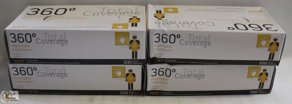 2,000 NEW CFI A APPROVED GLOVES, 360 TOTAL COVERAGE, POLYETHYLENE, 1.5MIL THICKNESS, 500 GLOVES PER BOX , 4 BOXES PER CASE - SIZE MEDIUM