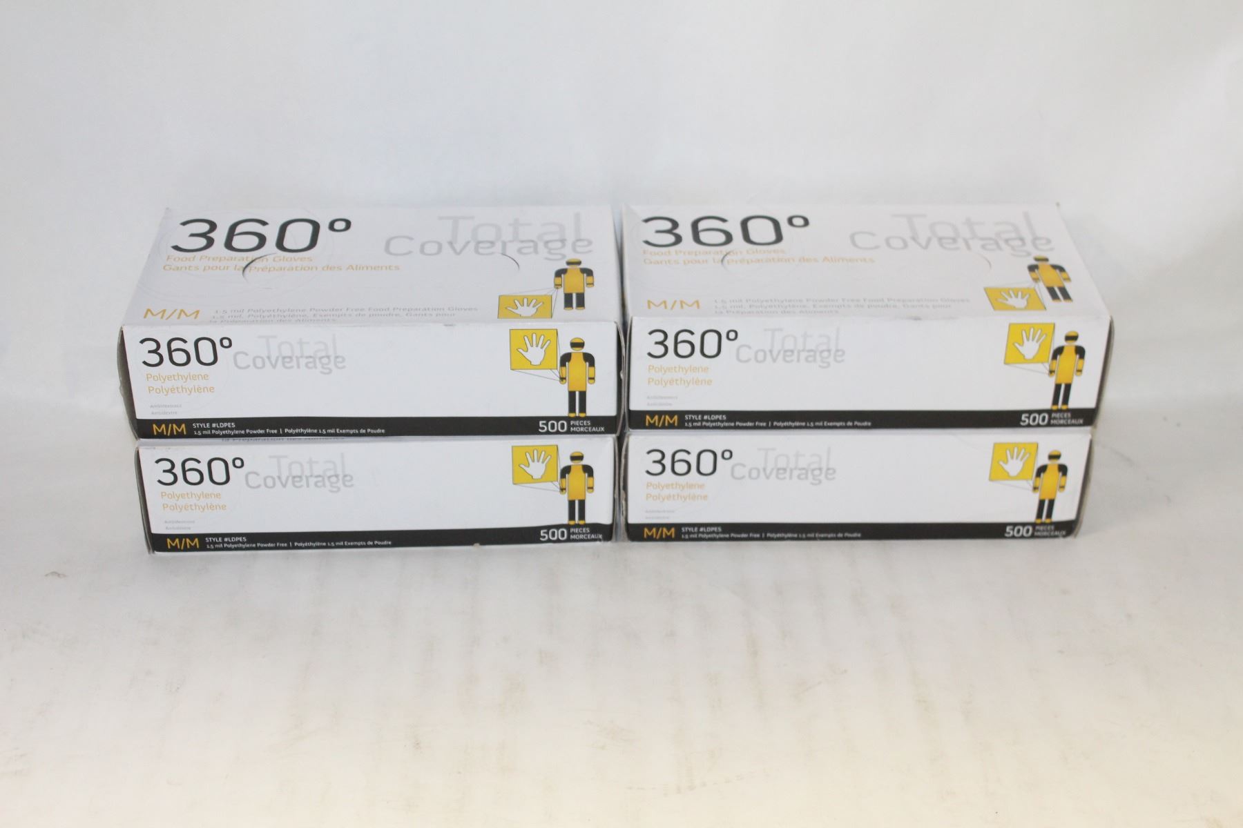 2,000 NEW CFI A APPROVED GLOVES, 360 TOTAL COVERAGE, POLYETHYLENE, 1.5MIL THICKNESS, 500 GLOVES PER BOX , 4 BOXES PER CASE - SIZE MEDIUM