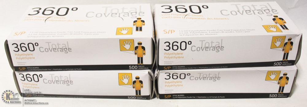 2,000 NEW CFI A APPROVED GLOVES, 360 TOTAL COVERAGE, POLYETHYLENE, 1.5MIL THICKNESS, 500 GLOVES PER BOX , 4 BOXES PER CASE - SIZE SMALL