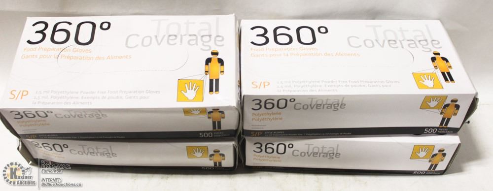 2,000 NEW CFI A APPROVED GLOVES, 360 TOTAL COVERAGE, POLYETHYLENE, 1.5MIL THICKNESS, 500 GLOVES PER BOX , 4 BOXES PER CASE - SIZE SMALL