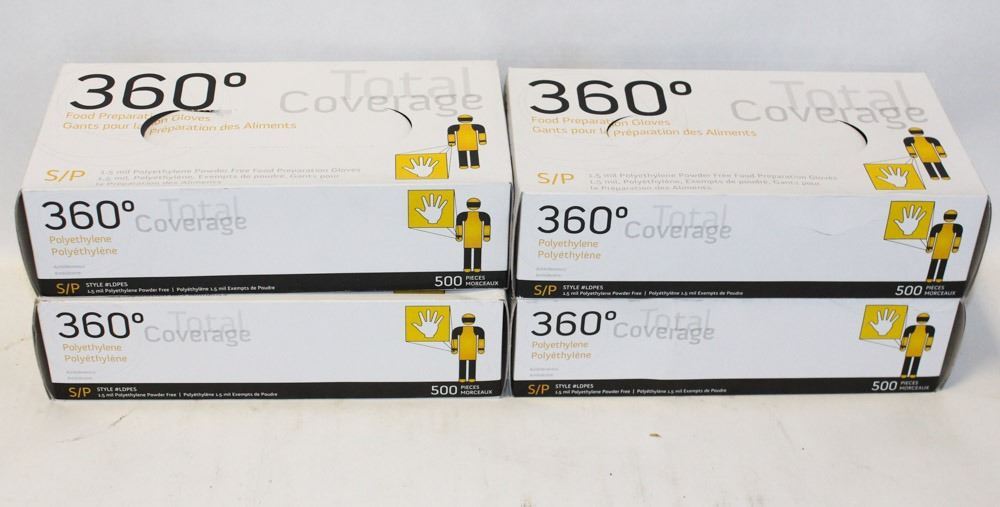 2,000 NEW CFI A APPROVED GLOVES, 360 TOTAL COVERAGE, POLYETHYLENE, 1.5MIL THICKNESS, 500 GLOVES PER BOX , 4 BOXES PER CASE - SIZE SMALL