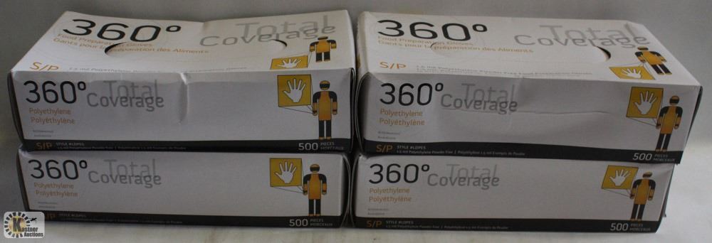 2,000 NEW CFI A APPROVED GLOVES, 360 TOTAL COVERAGE, POLYETHYLENE, 1.5MIL THICKNESS, 500 GLOVES PER BOX , 4 BOXES PER CASE - SIZE SMALL