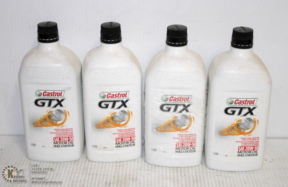 FOUR 1 LITRE JUGS OF CASTROL SAE 20W-50 MOTOR OIL