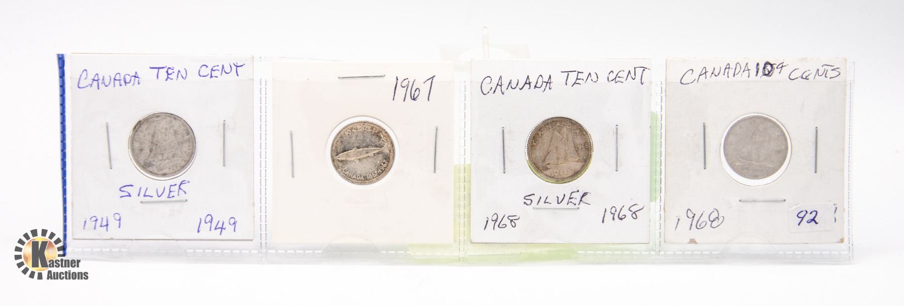 FOUR 10 CENT COINS: 1949, 1967,1968, 1968