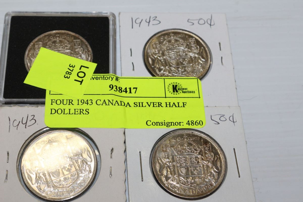 FOUR 1943 CANADA SILVER HALF DOLLARS