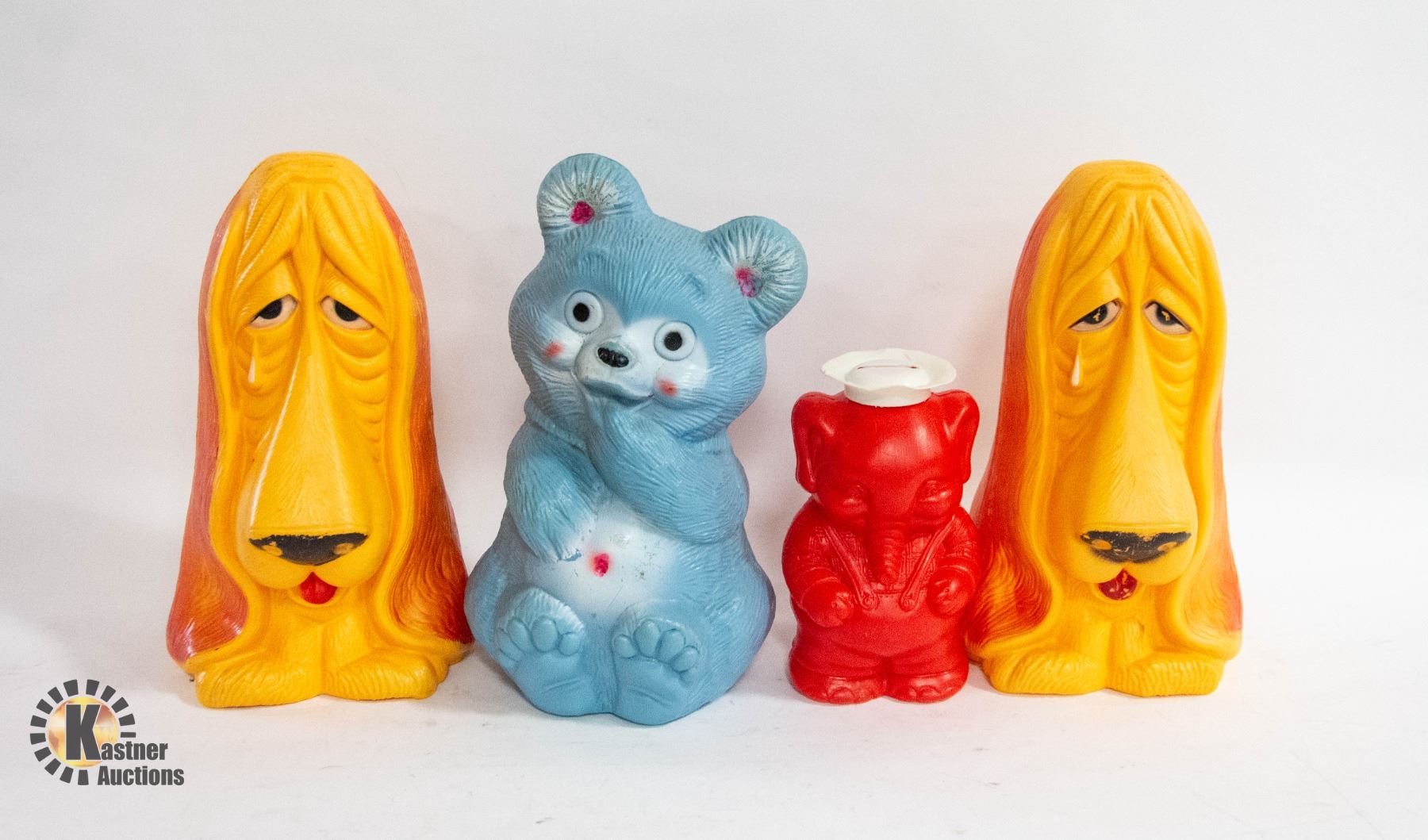 FOUR 1960'S PLASTIC PIGGY BANKS