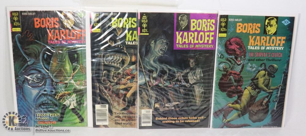 FOUR 30/40 CENT GOLD KEY BORIS KARLOFF COMICS