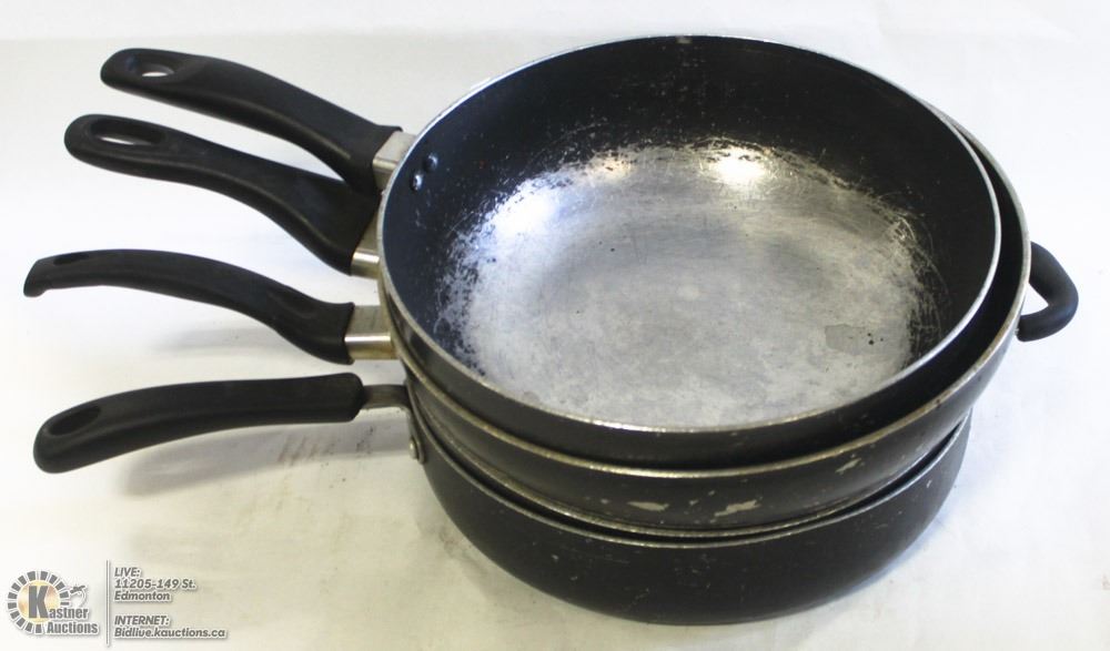 FOUR ASSORTED 12" ALUMINUM DEEP FRYING PANS
