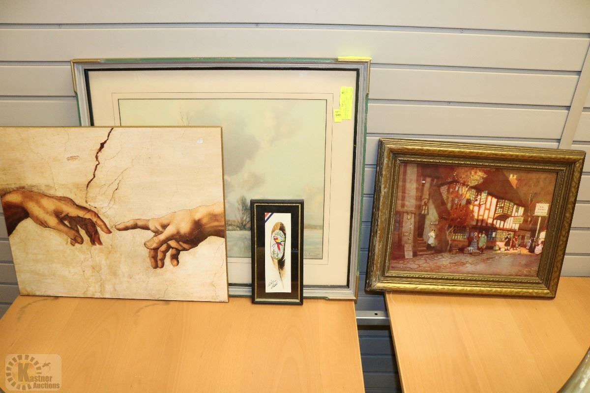 FOUR ASSORTED PICTURES - THREE FRAMED & ONE PLAQUE