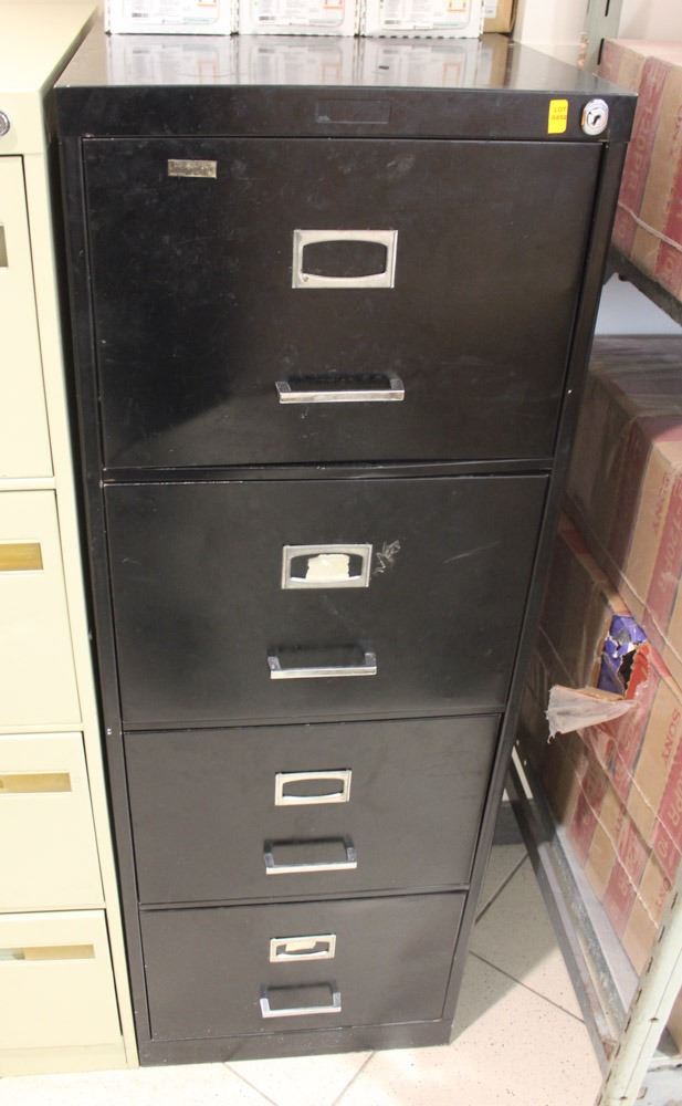 FOUR DRAWER BLACK FILING CABINET NO KEYS