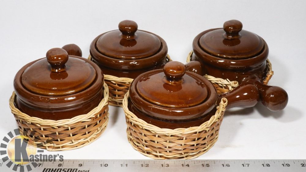 FOUR LIDDED ONION SOUP/CHILI BOWL WITH BASKETS