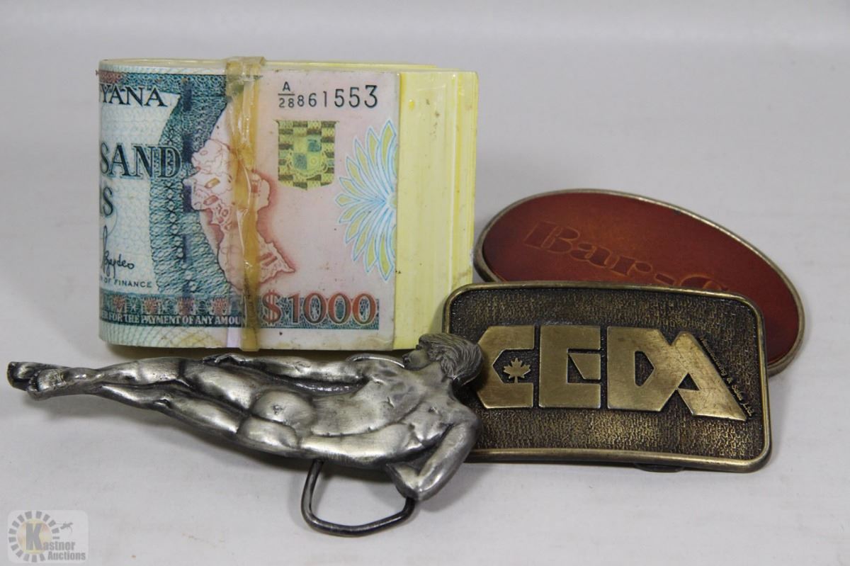 FOUR OILFIELD/NOVELTY BELT BUCKLES