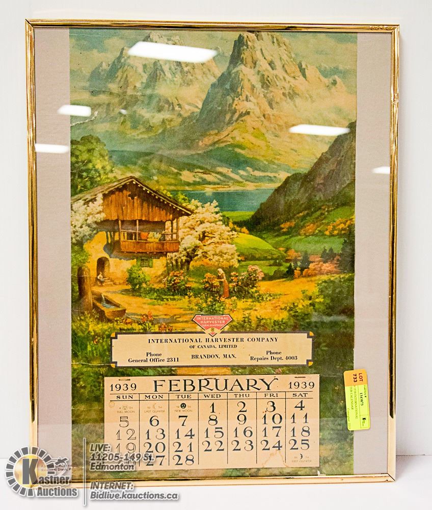 FRAMED 1939 INTERNATIONAL HARVESTER CALENDAR