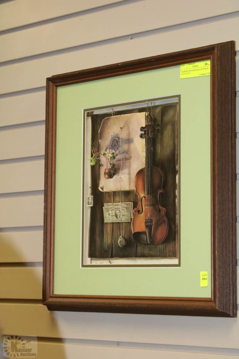 FRAMED 3D PAPER ART OF VIOLIN (16" X 18.5")