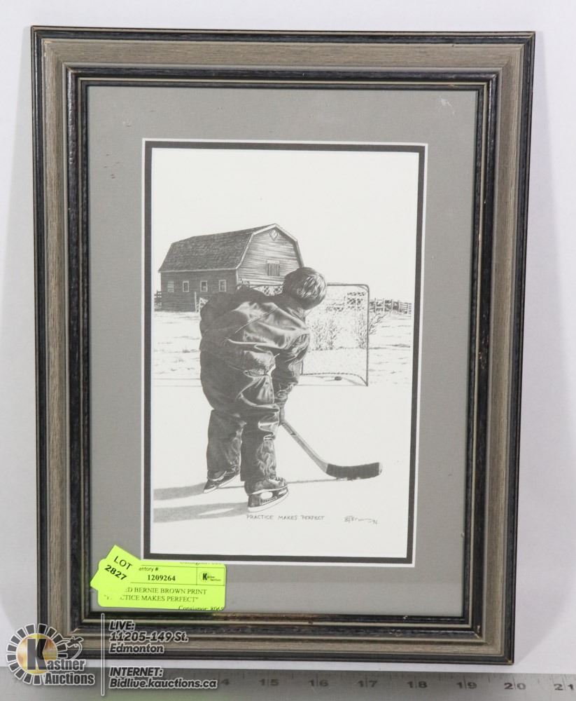 FRAMED BERNIE BROWN PRINT "PRACTICE MAKES PERFECT"