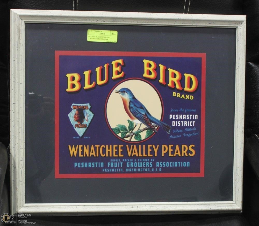FRAMED BLUE BIRD BRAND ADVERTISEMENT POSTER