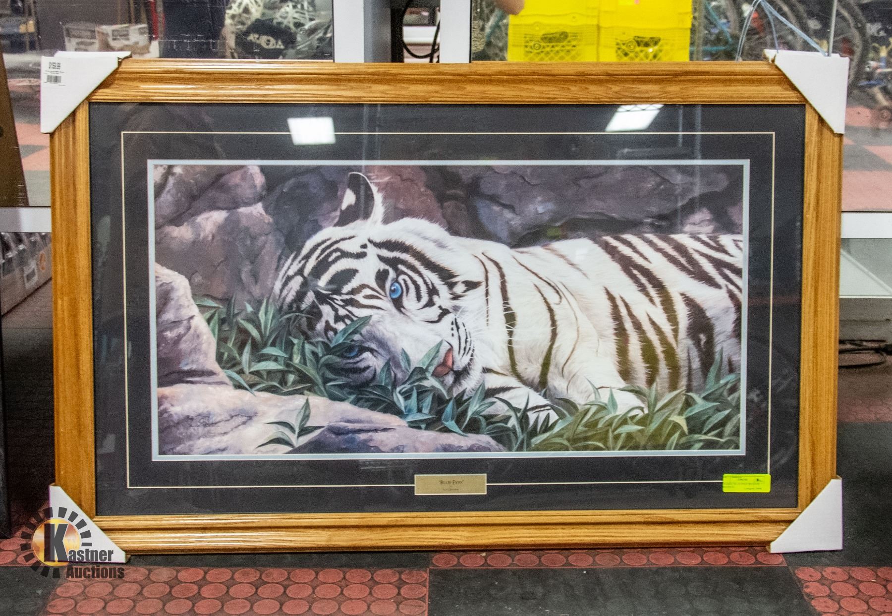 WHITE TIGER 26.25 INCHES X 42.25 INCHES **ALL ITEMS MUST BE REMOVED BY 5PM SATURDAY, MAY 11THTH 2024. ALL REMAINING ITEMS WILL BE SUBJECT TO A $6.00 PER DAY STORAGE CHARGE. ANY ITEMS REMAINING AFTER MONDAY, MAY 27TH 2024 WILL BE CONSIDERED FORFEITED. NO REFUNDS WILL BE ISSUED FOR FORFEITED ITEMS. TO SCHEDULE A PICK UP APPOINTMENT CLICK HERE