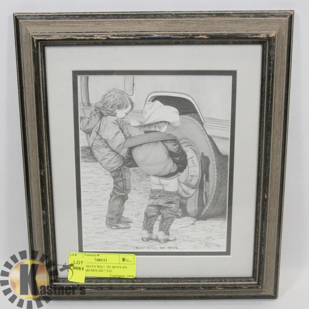 FRAMED BOYS WILL BE BOYS BY BERNIE BROWN SIGNED.