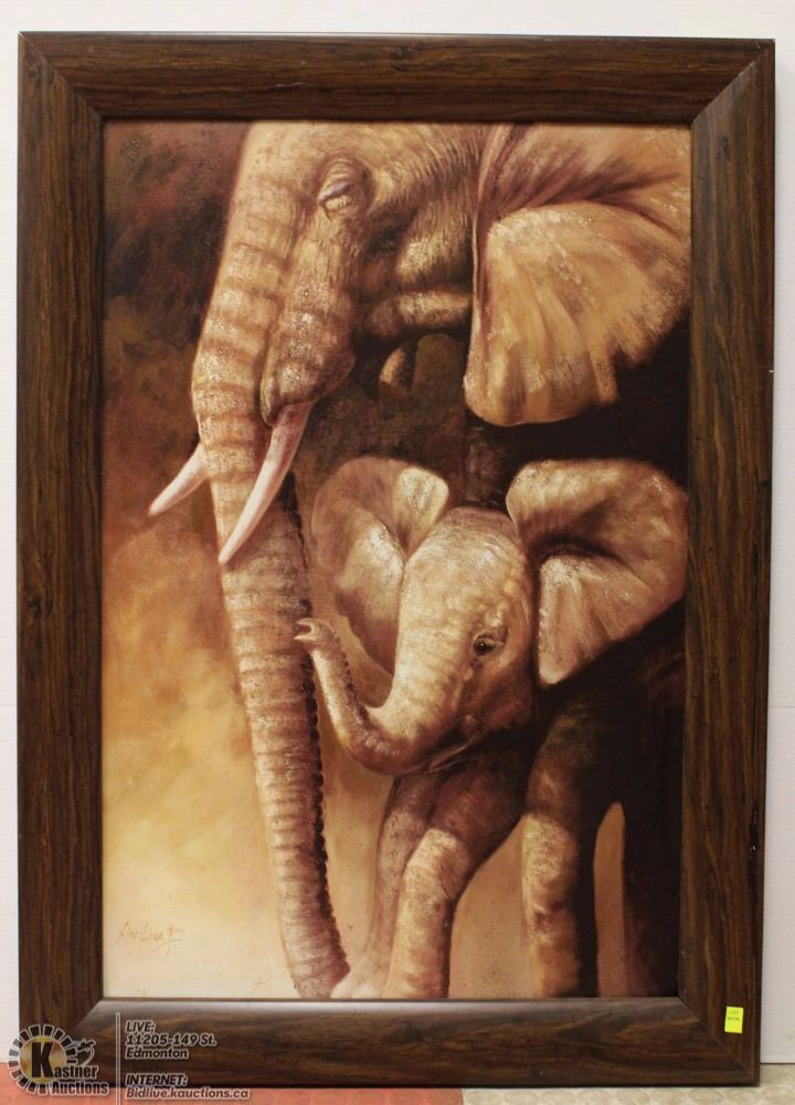 FRAMED CANVAS ELEPHANT MOM AND BABY 42 X 29