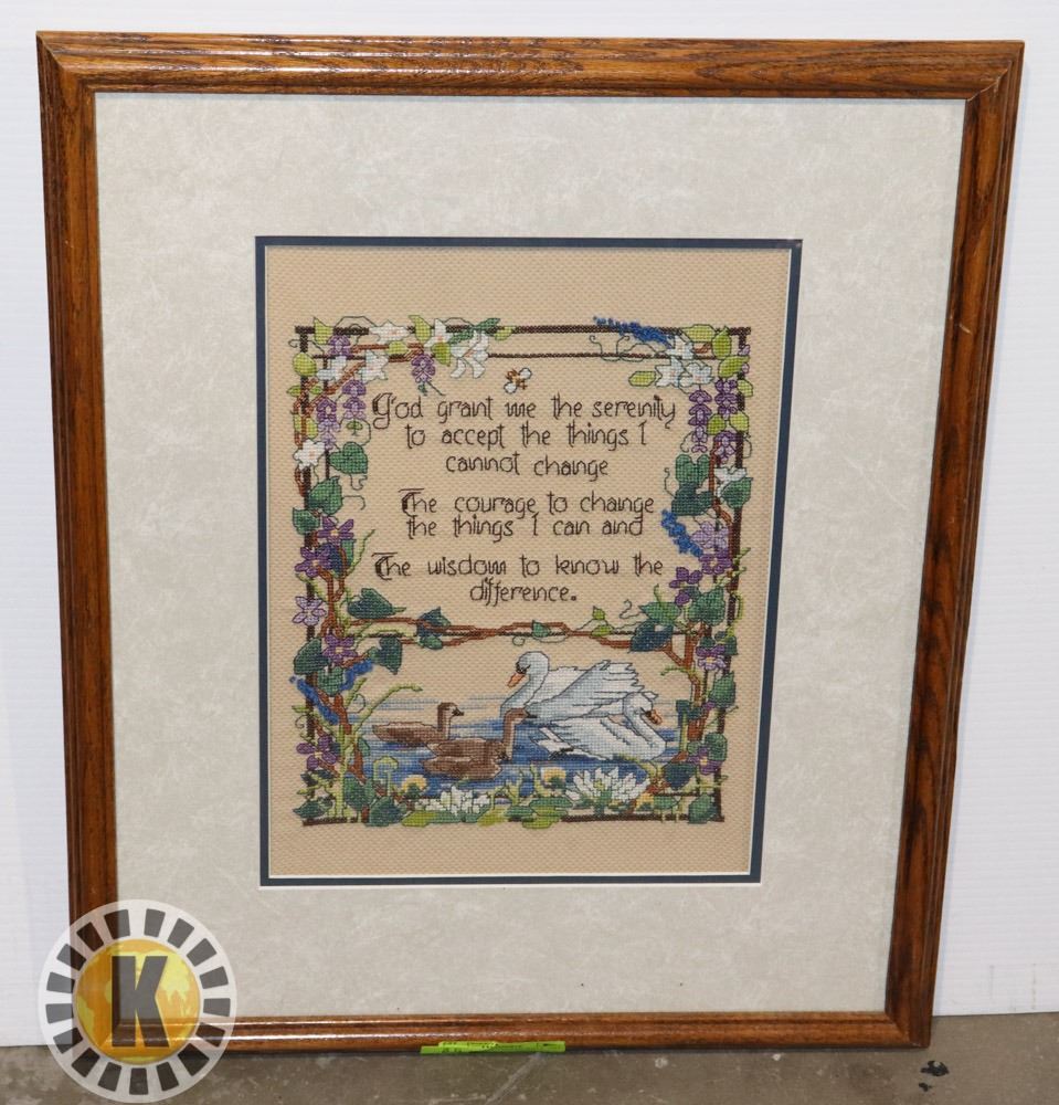 FRAMED EMBROIDERED WALL  ART- 17.5  BY 21.5
