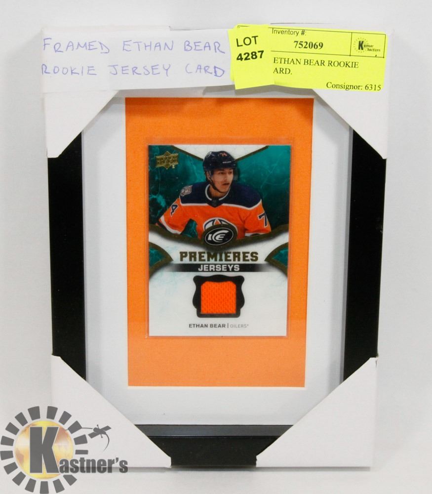 FRAMED ETHAN BEAR ROOKIE JERSEY CARD.