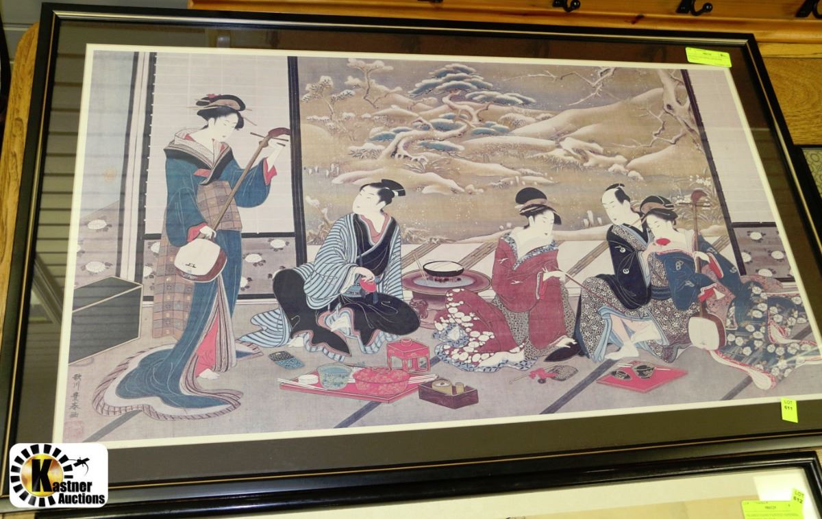 FRAMED JAPANESE ARTWORK 37"X22.5"