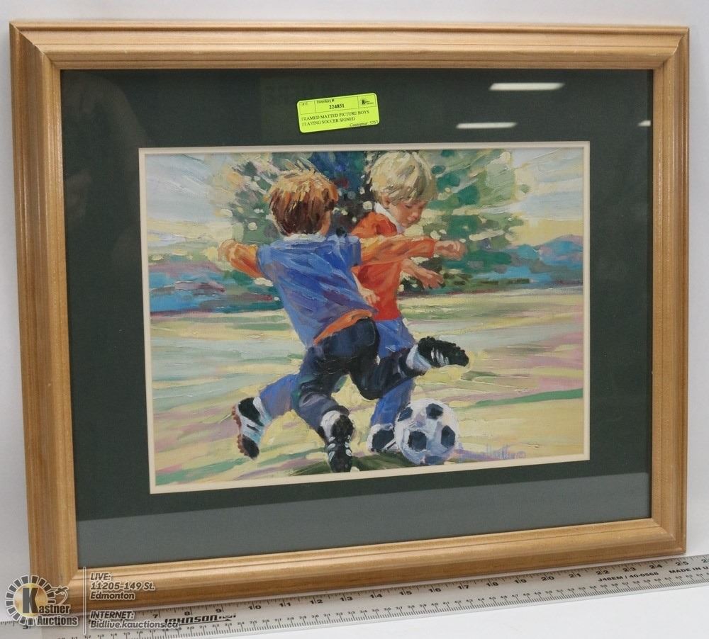 FRAMED MATTED PICTURE BOYS PLAYING SOCCER SIGNED