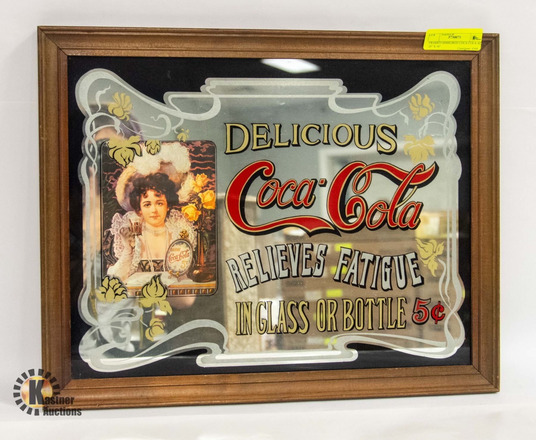 FRAMED MIRRORED COCA COLA AD 20" X 16"