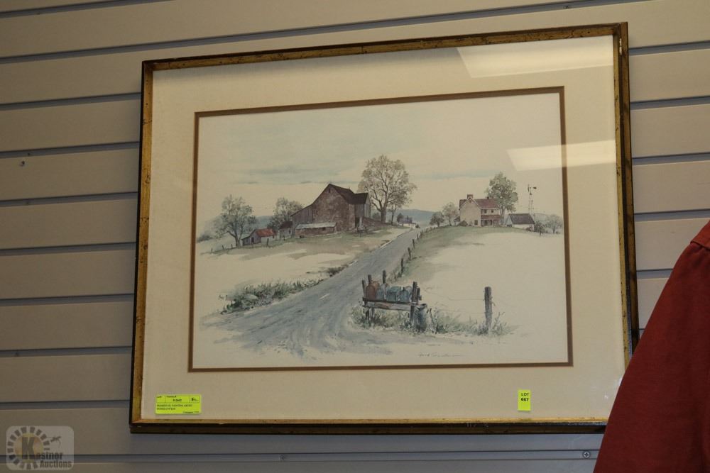 FRAMED OIL PAINTING ARTIST SIGNED 274"X24"