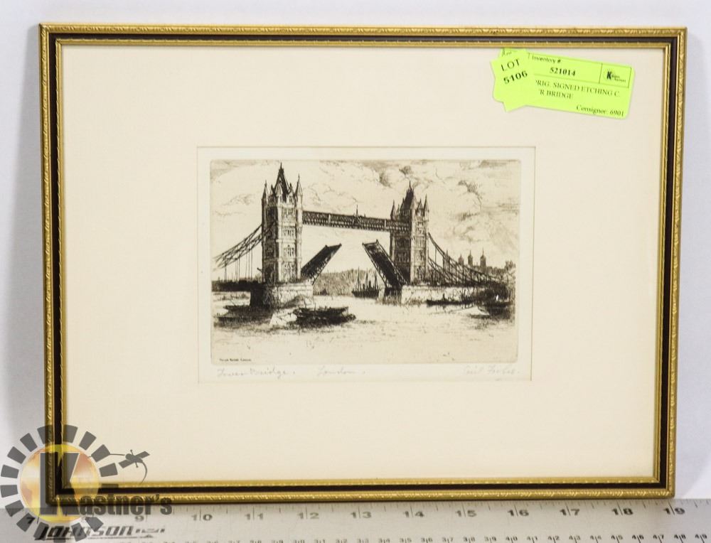 FRAMED ORIG. SIGNED ETCHING C. 1920 - TOWER BRIDGE
