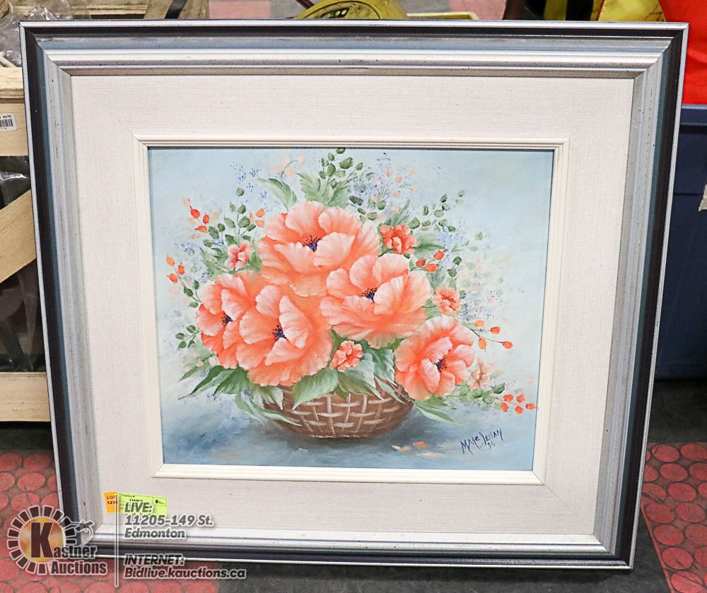 FRAMED ORIGINAL FLORAL PAINTING 24" X 25"
