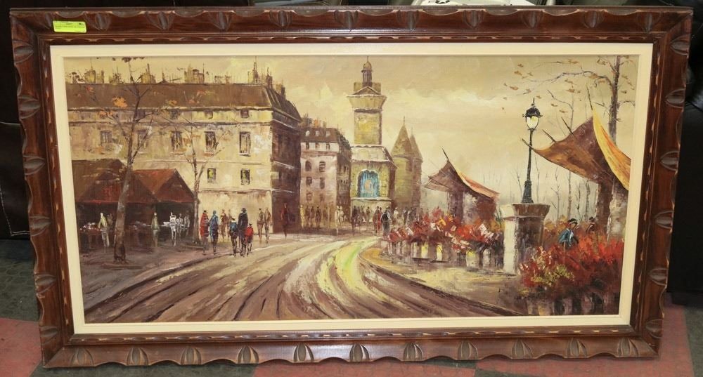 FRAMED PARIS SCENE OIL PAINTING 56"X31"
