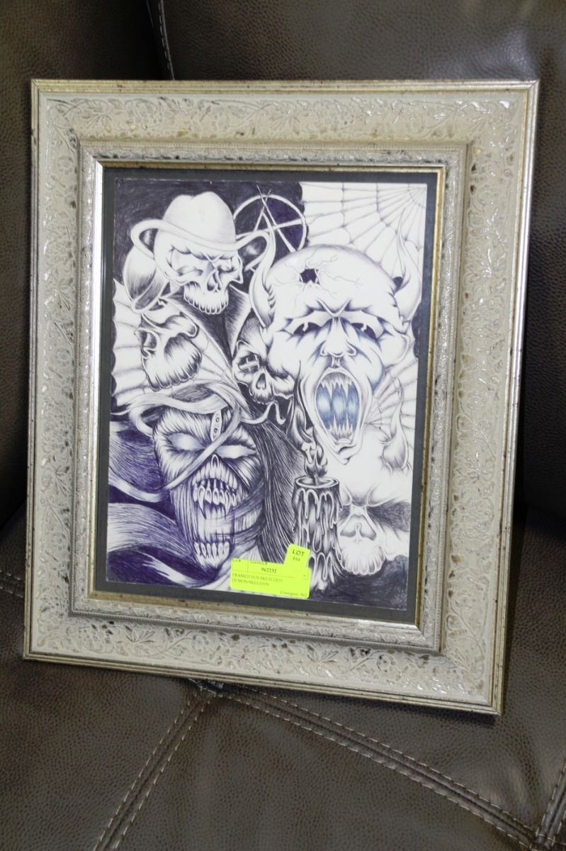 FRAMED PEN SKETCHED DEMON/SKELETON