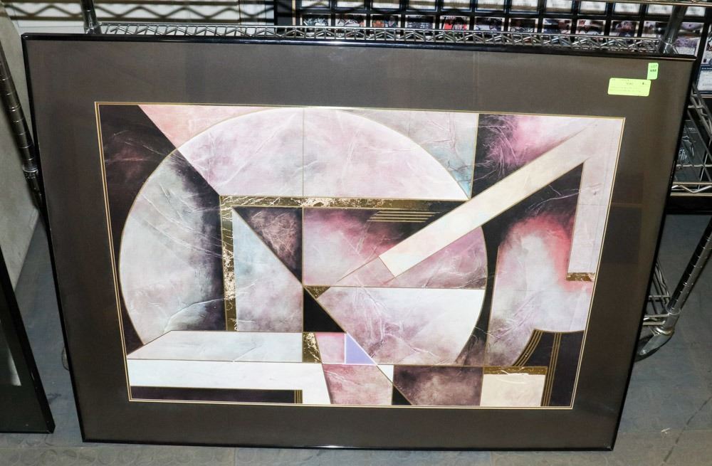 FRAMED SHOWHOME STYLE MATTED GEOMETRIC PICTURE.