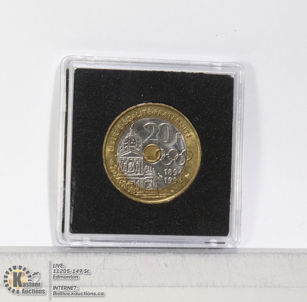 WORLDS FIRST TRI-METALLIC CIRCULATION COIN WITH 20 FRANC DENOM, SHORT LIVED, REPLACED BY THE EURO