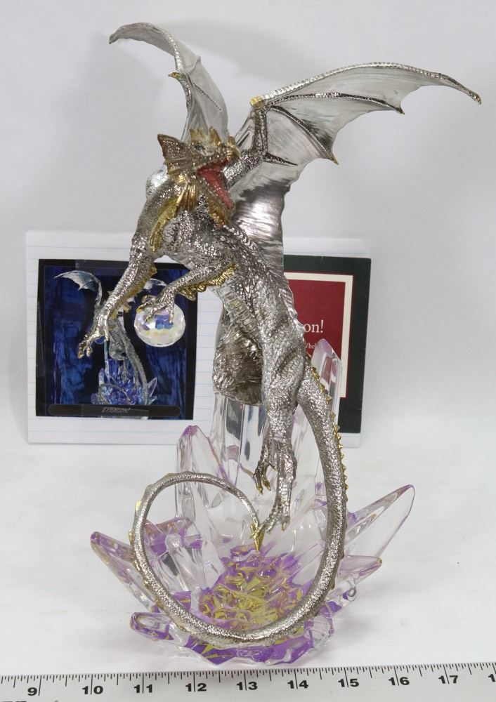 LEAD CRYSTAL BASE , HOLOGRAPHIC HIGHLIGHTS WITH ACCENT OF STERLING SILVER AND HAND PAINTED GOLDEN GLOW. COLLECTIBLES