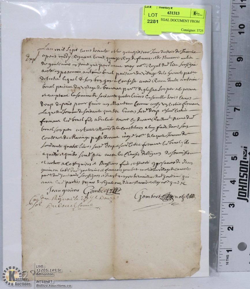 FRENCH LEGAL DOCUMENT FROM 1730