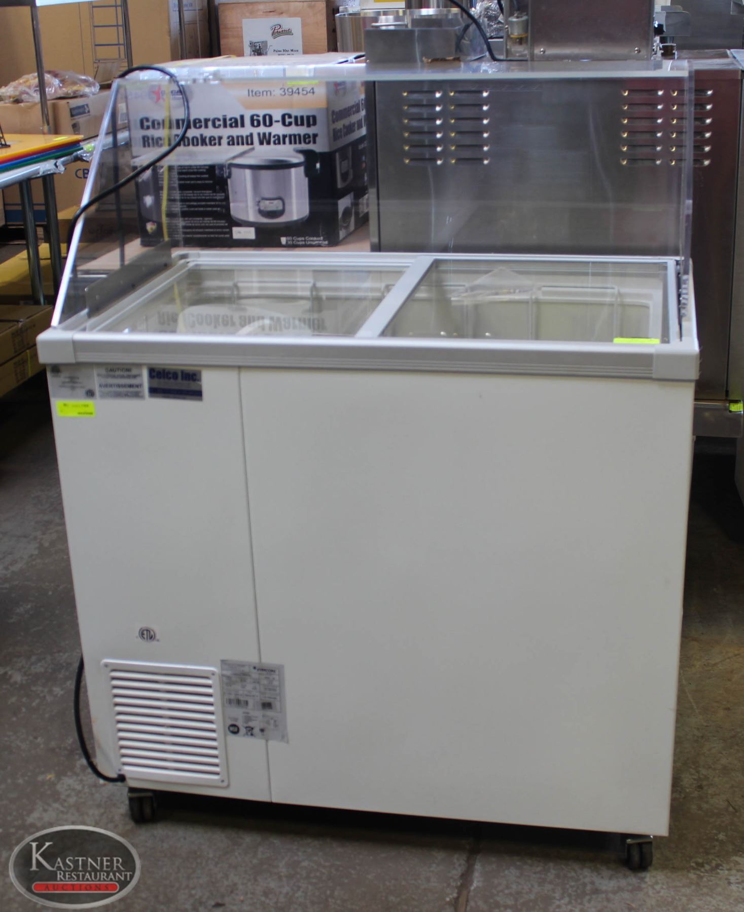 G.S. BY VALENTINI (MADE IN EUROPE), SLIDING GLASS TOP ACCESS, FULLY MOUNTED ACRYLIC SNEEZEGUARD, 3 BASKETS & THEIR TRAYS. M#: THG6SG, 115V, 180W, GROSS 9.61 CU./FT, NET 8.83 CU./FT. 40" X 25-1/2" X 36"(50" W/ SNEEZEGUARD)
