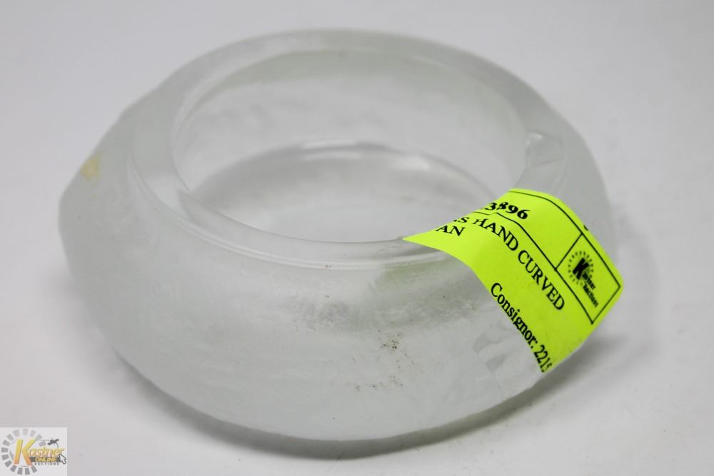 FROSTED GLASS HAND CURVED ASHTRAY JAPAN