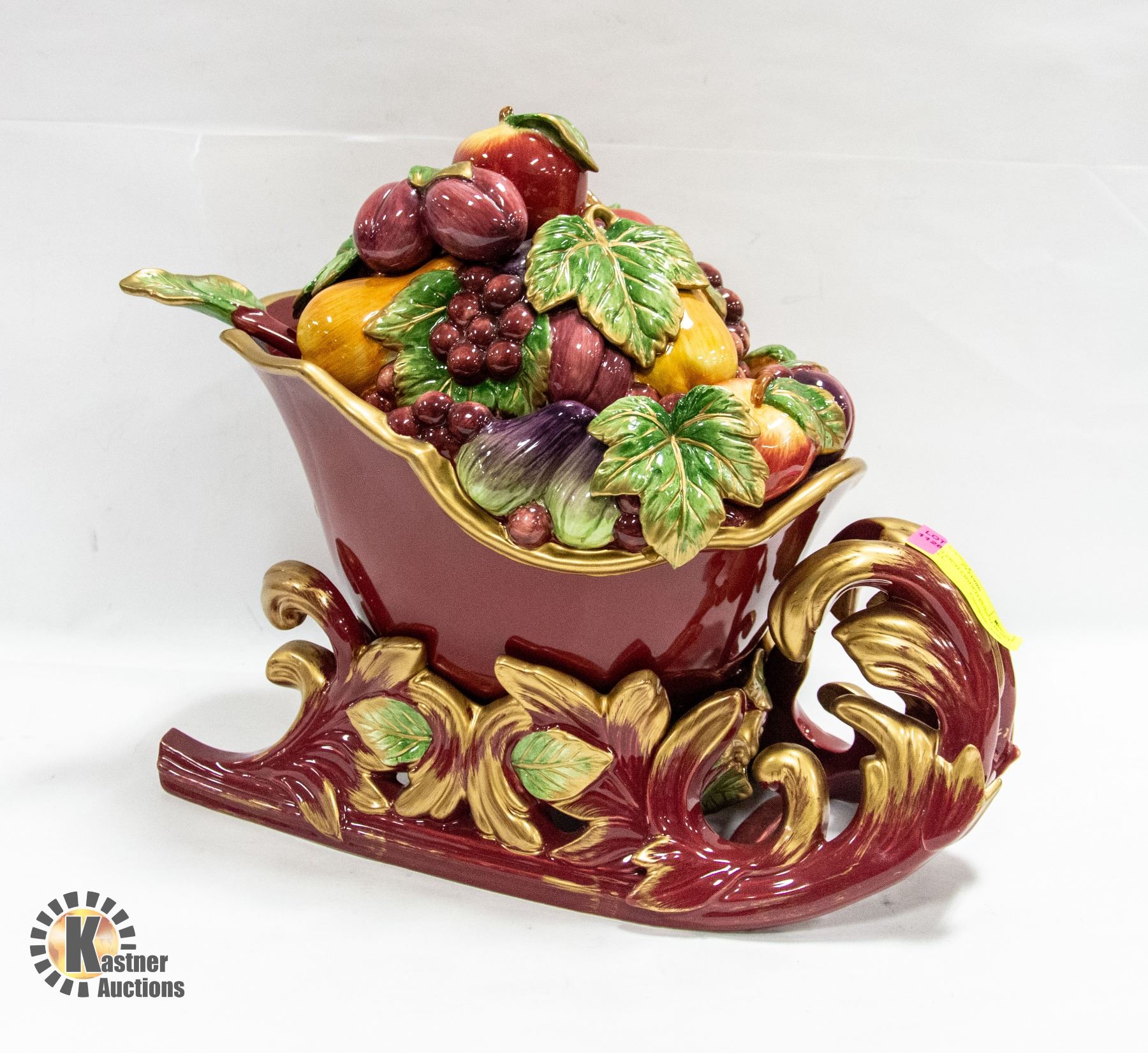 FRUIT SLEIGH LIDDED PUNCH BOWL WITH LADEL