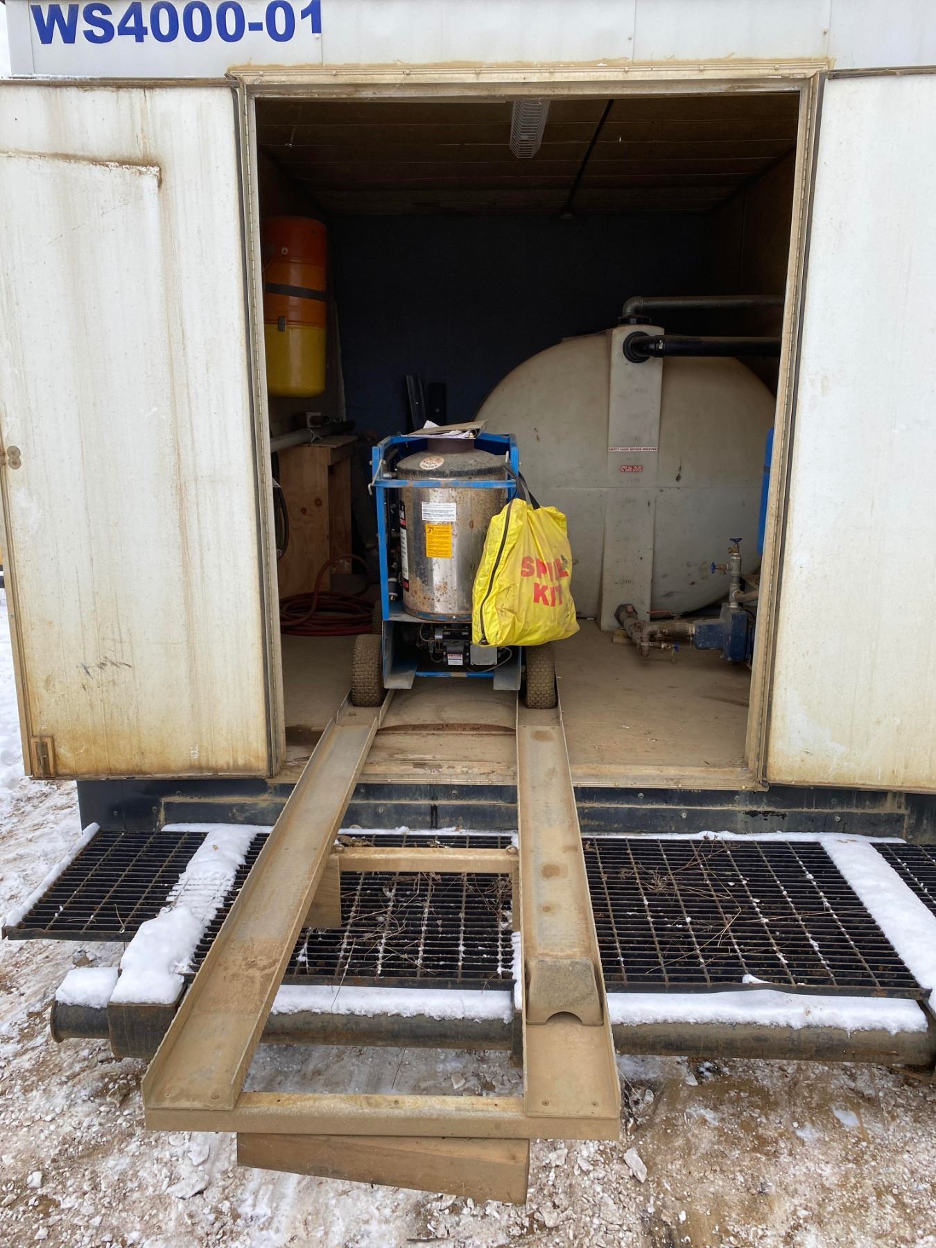 20FT SKID, 1300L FRESH WATER HOLDING TANK, 2000 PSI EASY-KLEEN ELECTRIC PUMP /DIESEL BURNER HOT WATER PRESSURE WASHER, SOLUVAC VACUUM CLEANER, ELECTRIC PRESSURE SYSTEM, ELECTRIC HEAT