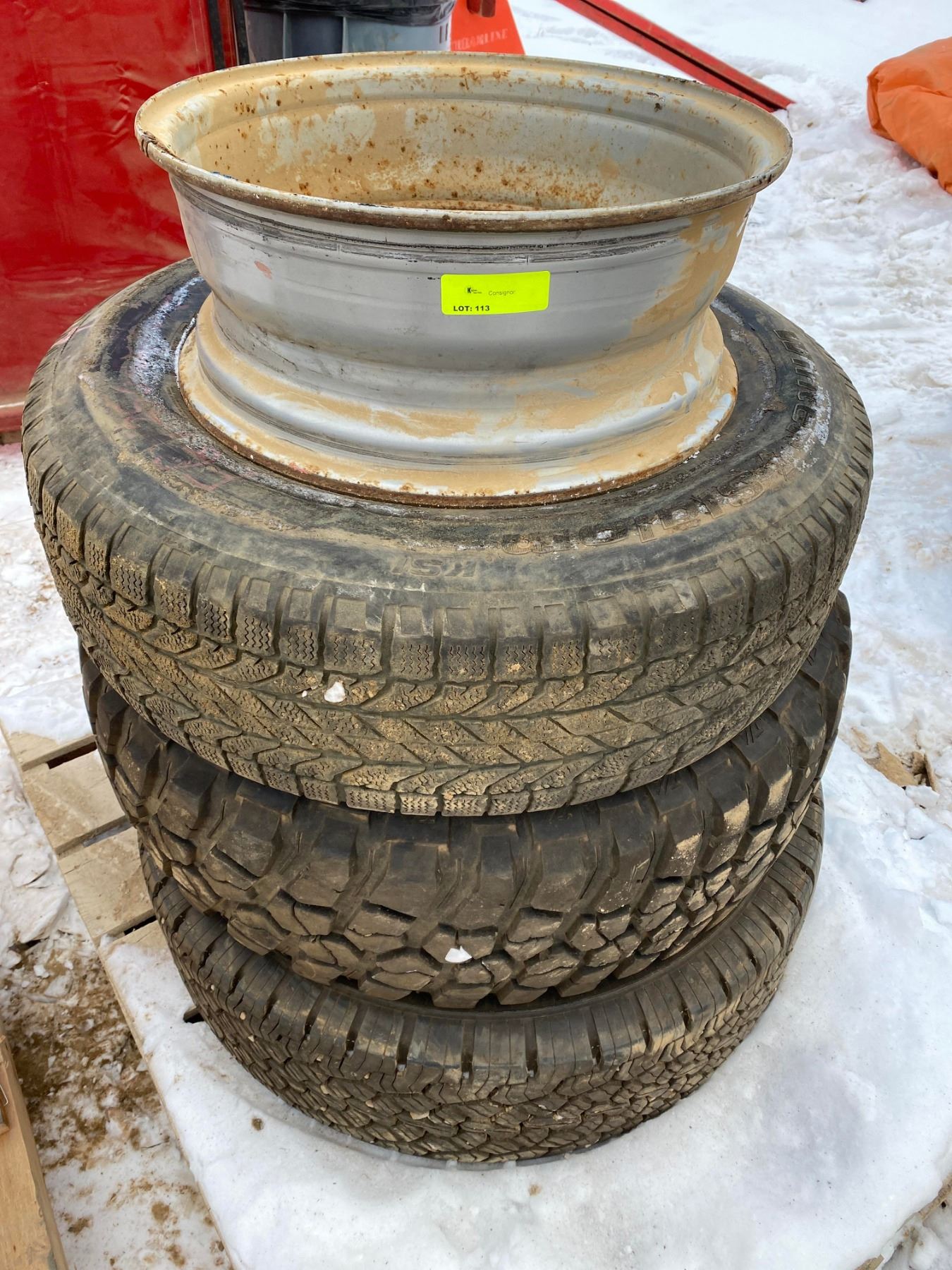 FT.MAC: LOT OF 3 ASSORTED TIRES & 1 RIM