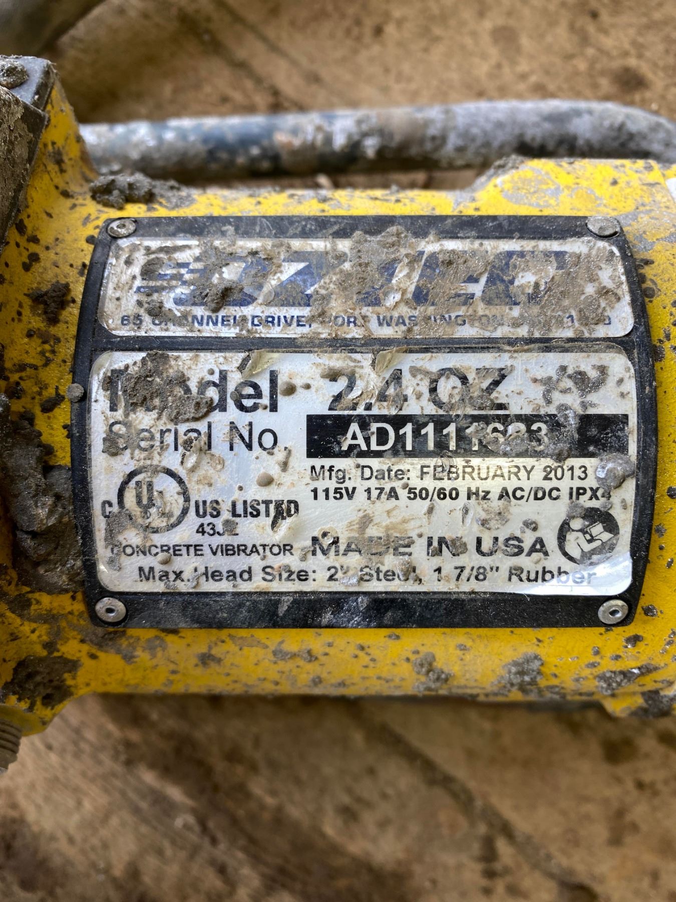 FT.MAC: OZTEC 2.4OZ CONCRETE VIBRATOR, 115V