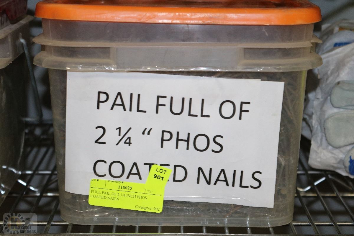 FULL PAIL OF 2 1/4 INCH PHOS COATED NAILS