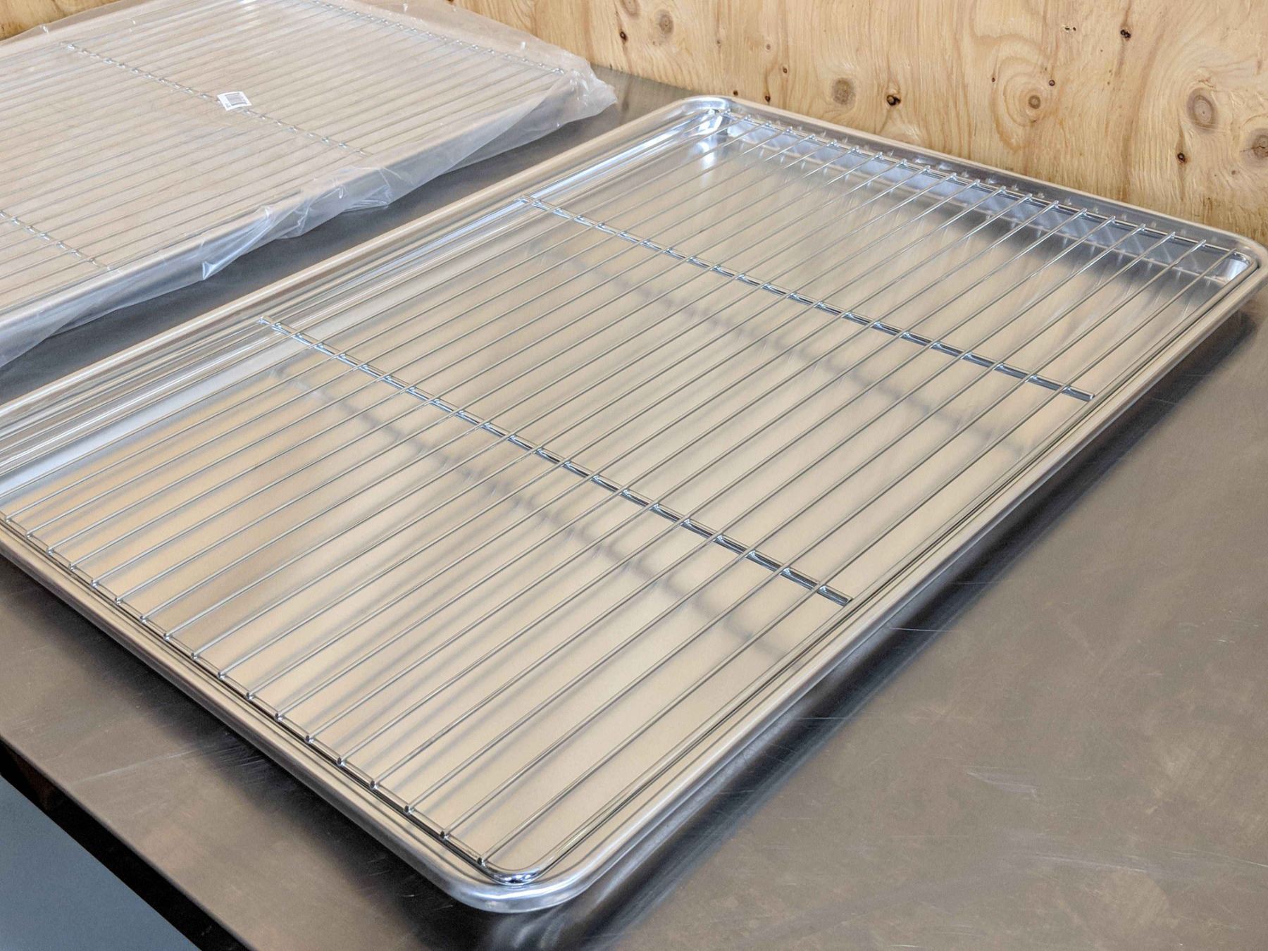 K480 NEW 18" X 26" FULL SIZE ALUMINUM BUN PAN WITH 15-3/4" X 24-13/16 FLAT ALUMINUM RACK - LOT OF 2 PIECES