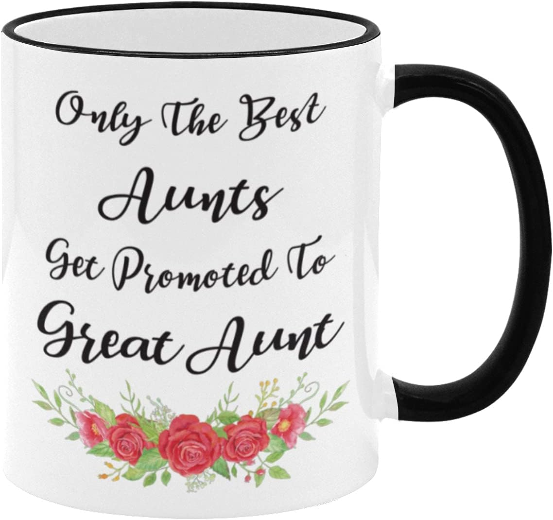 FUNNY WHITE + BLACK NOVELTY COFFEE MUG, ONLY THE BEST AUNTS GET PROMOTED TO GREAT AUNT COFFEE MUG 11 OZ CERAMIC MUG, AUNTS COFFEE MUG, AUNTS MUG, AUNT COFFEE CUP, AUNT CUP, RED BORDERS