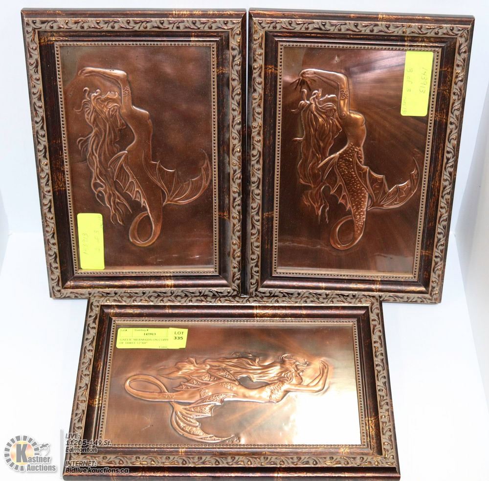 GAELIC MERMAIDS ON COPPER  SET OF THREE 12 X8