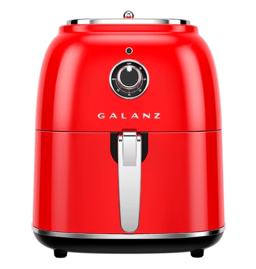 GALANZ RETRO ELECTRIC AIR FRYER WITH NON-STICK BASKET, TEMPERATURE AND TIME CONTROL, OIL-FREE FOR HEALTHY FRYING, AUTO SHUTOFF, 4.8QT, 1500W, RETRO RED