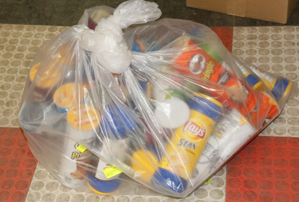 GARBAGE BAG FULL OF ASSORTED PRINGLES