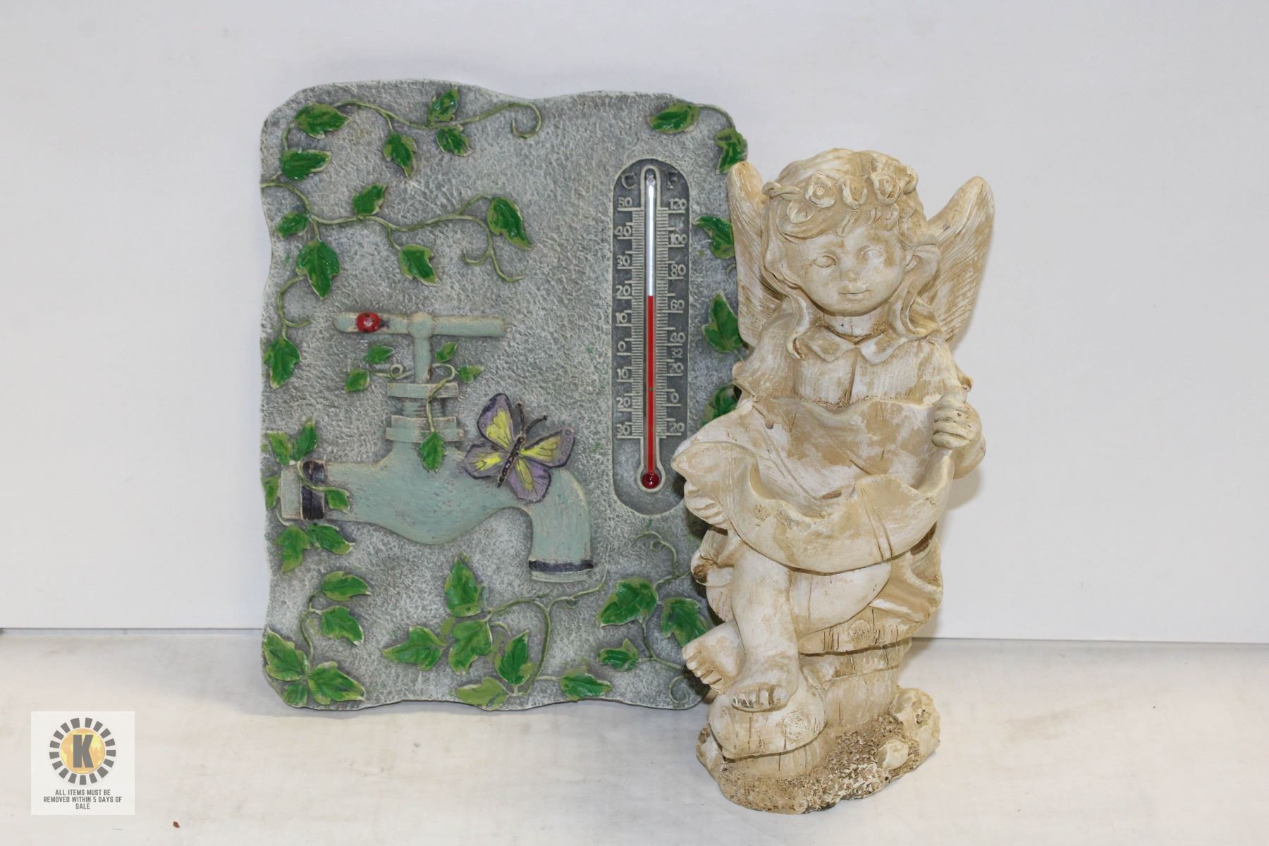 GARDEN LOT THERMOMETER AND ANGEL BOTH 9